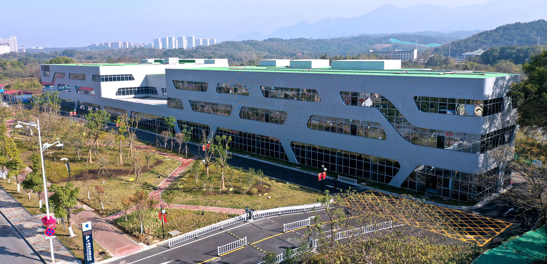 項(xiàng)目結(jié)合周邊環(huán)境,采用平面移動類立體智能車庫,整個(gè)車庫5層,可容納近千個(gè)車位,智能化程度高。設(shè)計(jì)取法自然,外觀造型優(yōu)美,車庫與周邊環(huán)境和諧相生。2020年榮獲“國內(nèi)最美智能立體車庫”獎(jiǎng)。